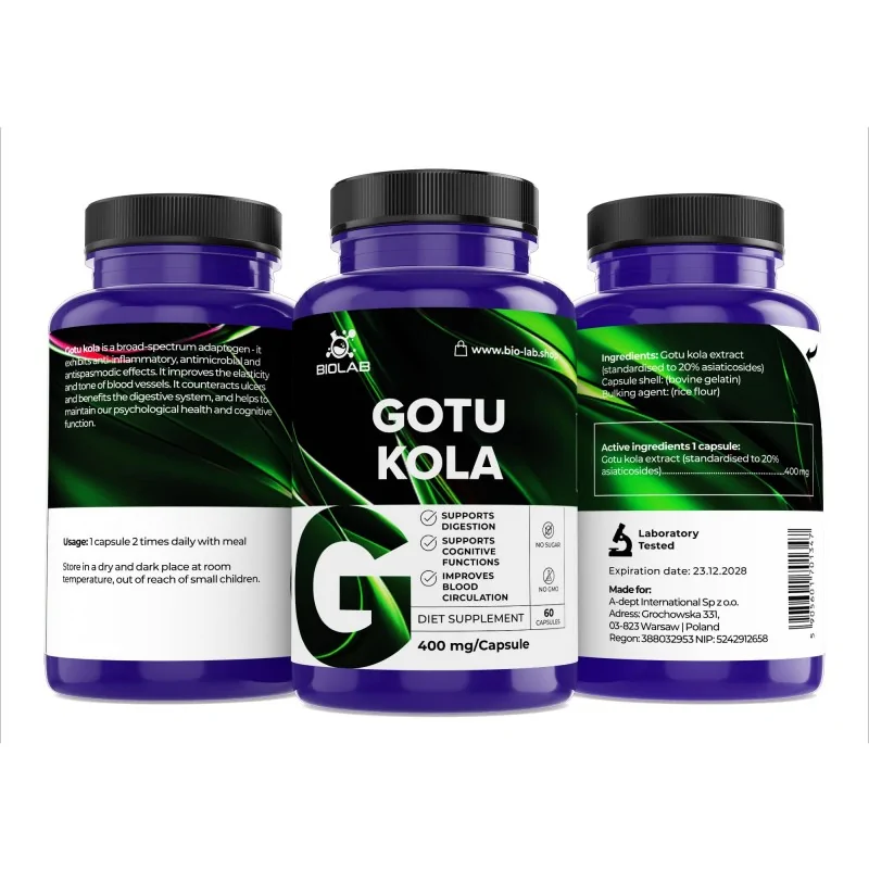 Each bottle contains 60 capsules, each delivering 400mg of Gotu Kola, providing precise, consistent dosing for research purposes. The capsule form ensures accurate administration, convenient use, and reliable absorption, making it ideal for laboratories, researchers, and cognitive science studies.
