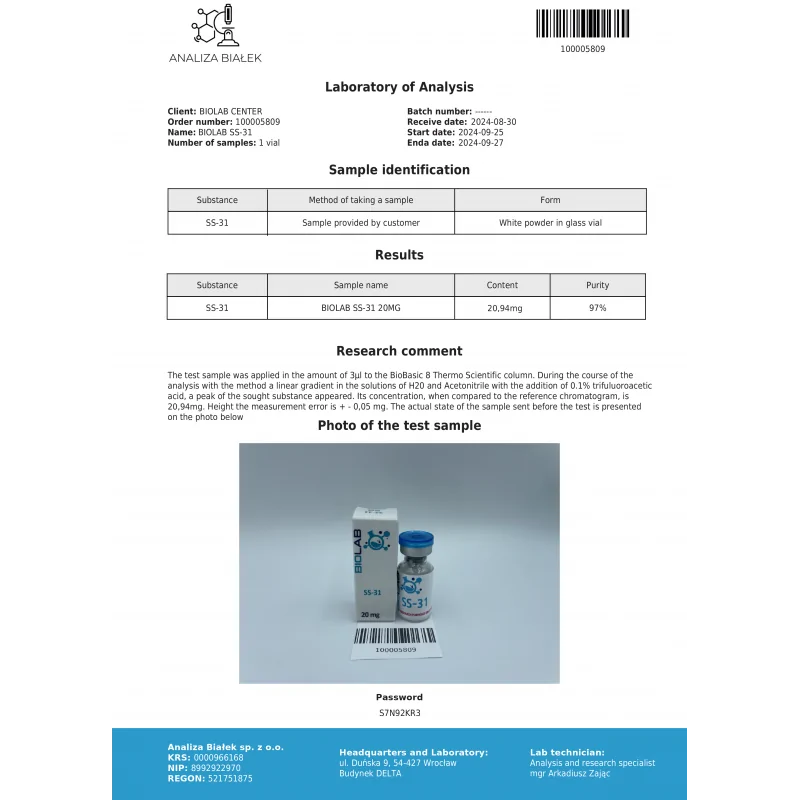 SS-31 20mg is a highly potent, research-grade peptide designed for laboratory studies investigating mitochondrial function, oxidative stress, and cellular protection mechanisms. SS-31 is widely used in experimental research focused on mitochondrial health, reactive oxygen species modulation, and cellular energy regulation.